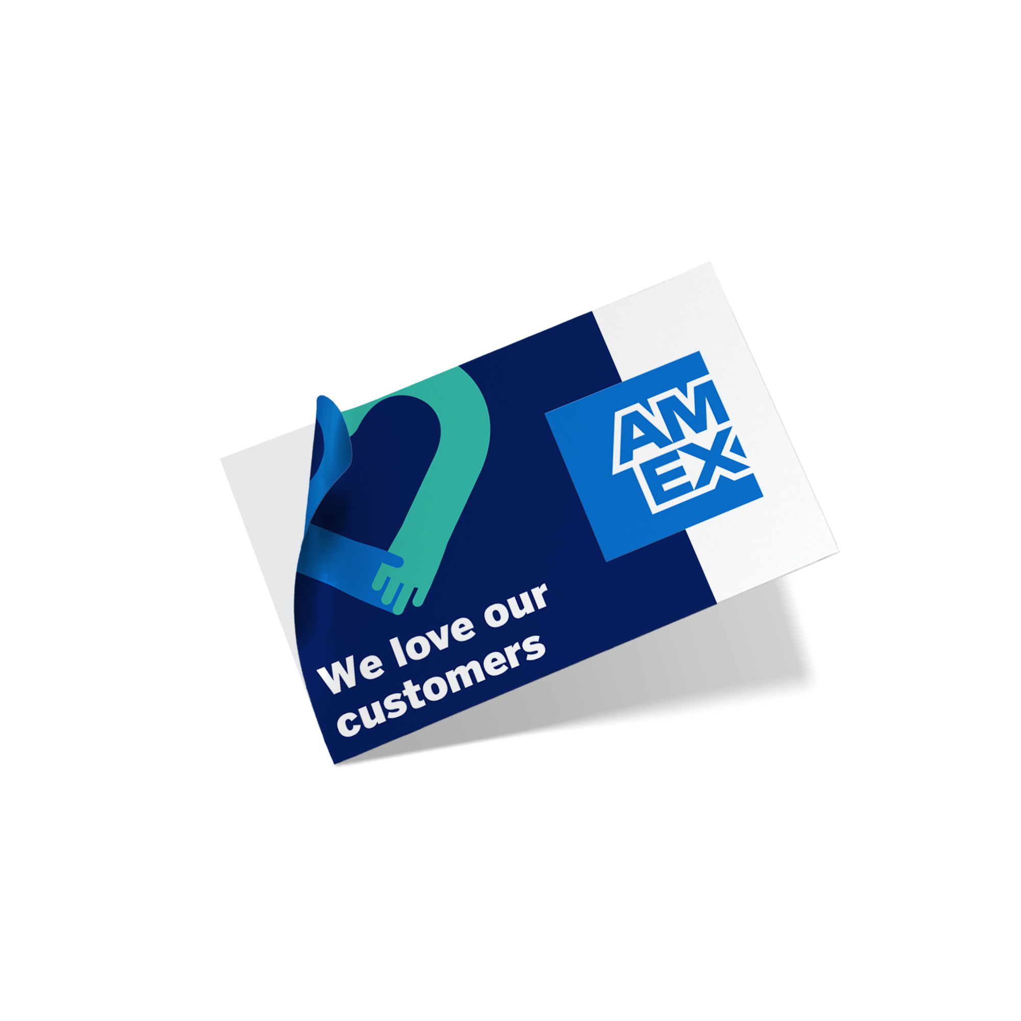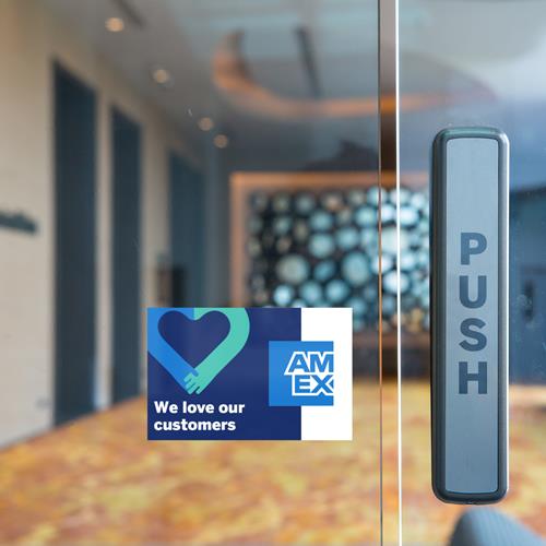 Show love to your customers with this stylish sticker. Display on your shop front and point of sale to encourage Card Members to spend using their American Express® Card.Dimensions: 12.7cm x 8.25cm