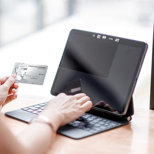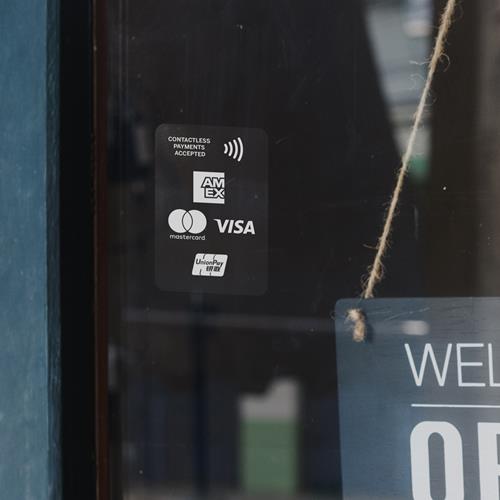There are 2 different ways that you can display on your point-of-sale terminal and/or point of entry to show American Express Card Members that you accept their card.