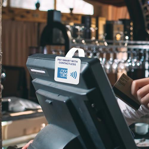 A ‘Pay smart with contactless’ wobbler to place on your point of sale terminal, to encourage cardholders to spend with their American Express card.