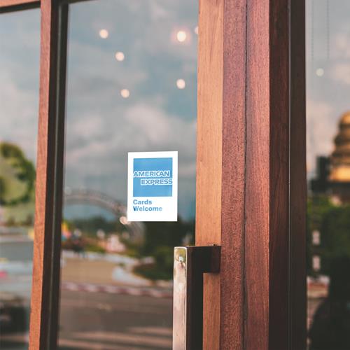 Welcome American Express Card Members into your business with this simplistic, elegant sticker. With classic AMEX branding, this medium size rectangular sticker can be displayed in store, at point of sale and storefront.