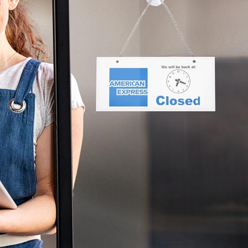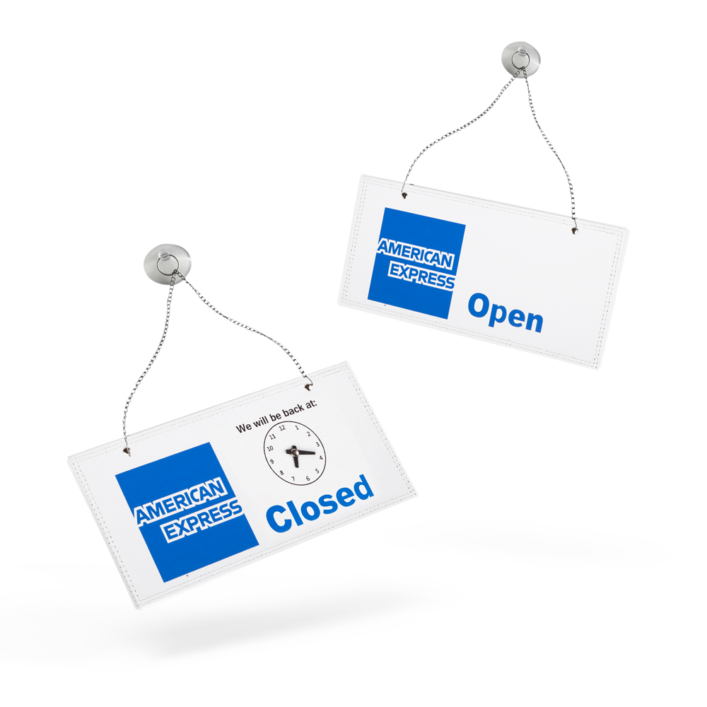 Hang this sign on your shopfront to show your customers when you are open for business. Each sign comes with a suction cap to attach securely on the inside of your window or door, and a clock on the closed side to indicate what time you open.