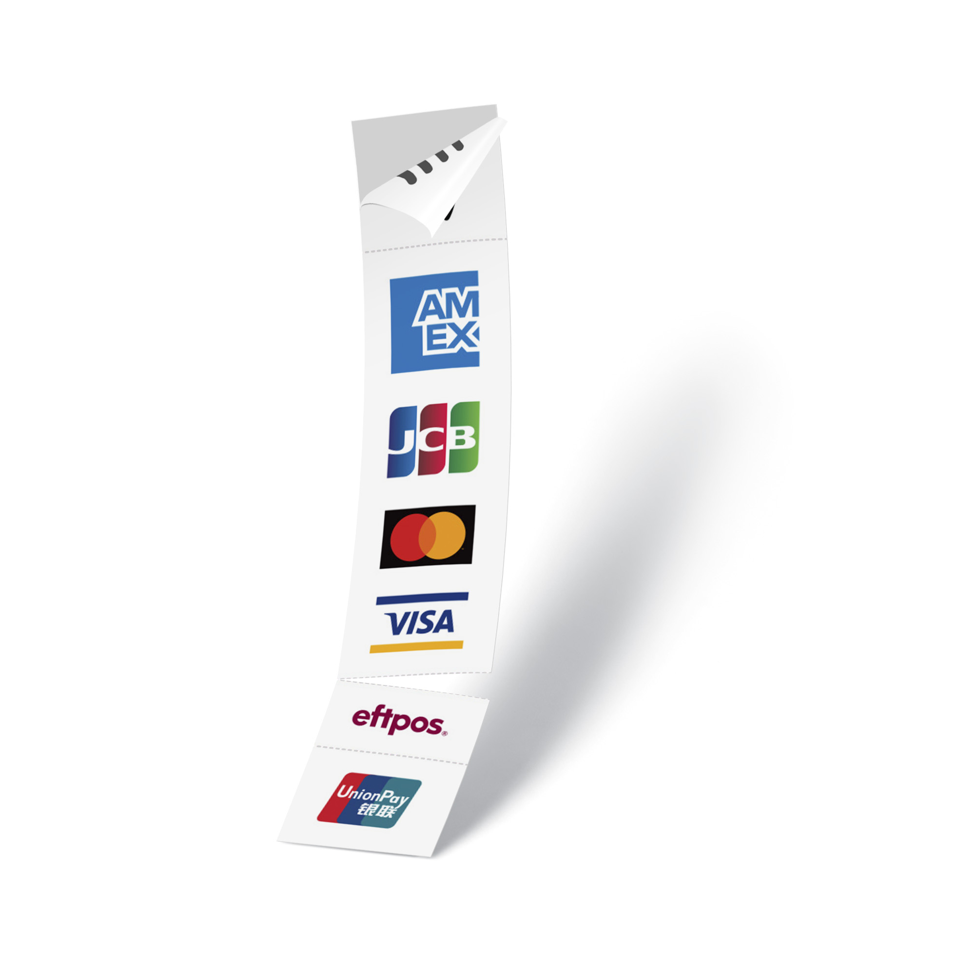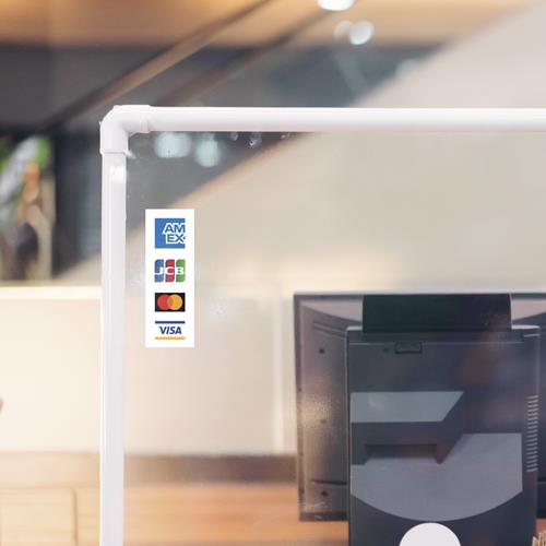 This double-sided sticker can be displayed on your storefront and point of sale to encourage American Express transactions and inform customers of their payment options. Perforation lines allow businesses to remove payment methods that may not be relevant instore.